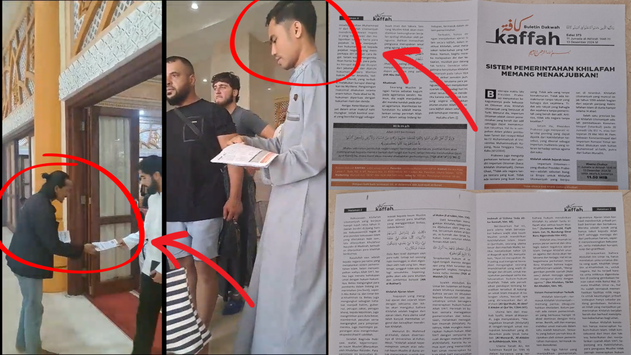 Mataram – Ratusan jamaah Masjid Islamic Center Hubbul Wathon Kota Mataram dikejutkan dengan pembagian buletin dakwah bertajuk Kaffah oleh sekelompok orang usai Salat Jumat pada 13 Desember 2024. Buletin tersebut diketahui berasal dari Hizbut Tahrir Indonesia (HTI).