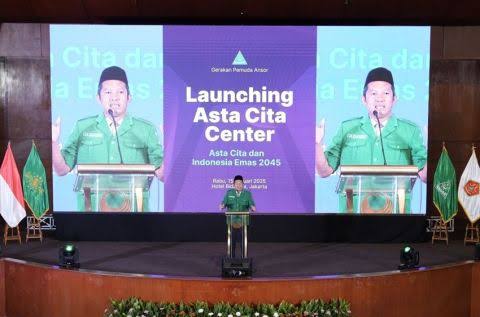 Gerakan Pemuda (GP) Ansor meluncurkan lembaga think tank baru bernama Asta Cita Center. Lembaga ini dirancang untuk mendukung realisasi agenda strategis pemerintahan Prabowo Subianto dan Gibran Rakabuming Raka demi mewujudkan visi Indonesia Emas 2045.