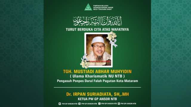 Keluarga Besar Gerakan Pemuda Ansor Nusa Tenggara Barat (NTB) menyampaikan duka cita mendalam atas wafatnya Tuan Guru Haji (TGH) Mustiadi…
